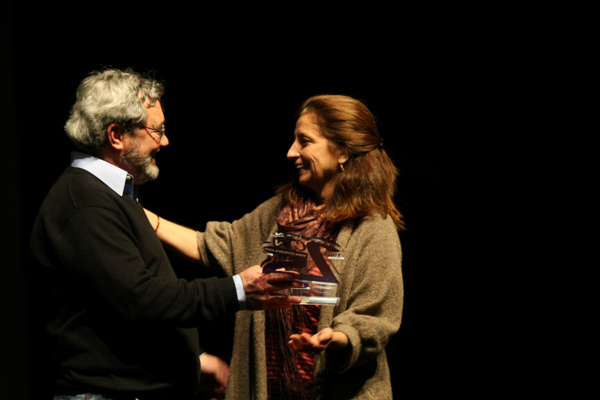 Entregando la distinción a Vicky Guzmán programadora de la Diputación Provincial de Sevilla