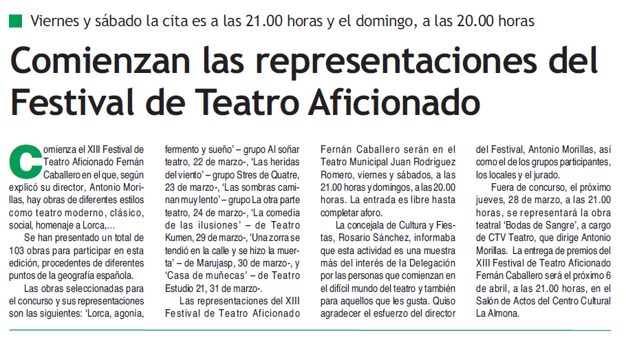 RECORTES DE PRENSA DE CTV Teatro